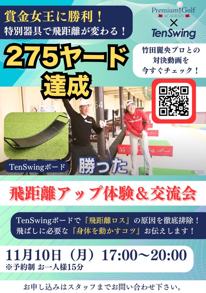 当日は Ten Swingボード を使用し、飛距離アップを目指せる特別なプログラムをご用意しています。