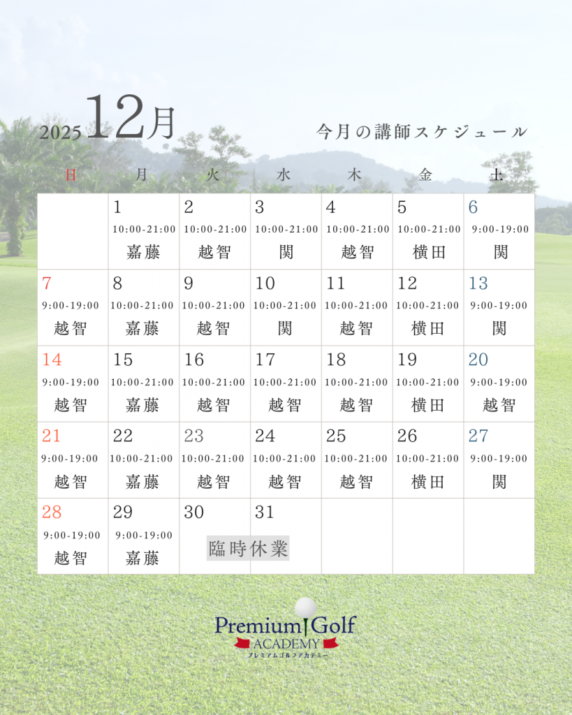 プレミアムゴルフアカデミー赤坂では、12月も経験豊富な講師陣によるレッスンを実施しております⛳️✨