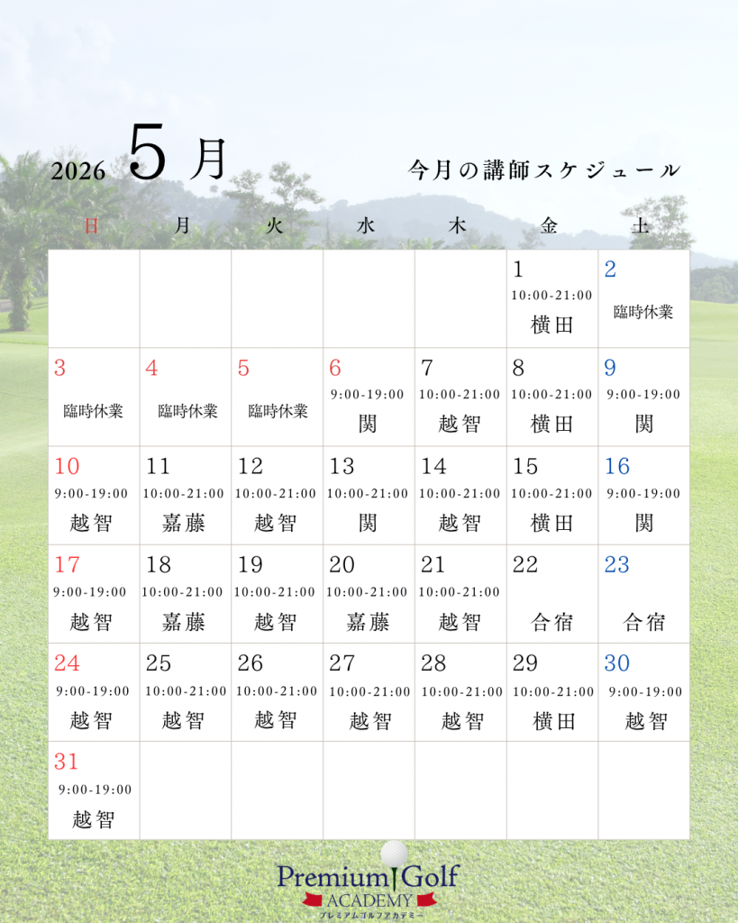 プレミアムゴルフアカデミー赤坂5月の講師スケジュールはこちら✨