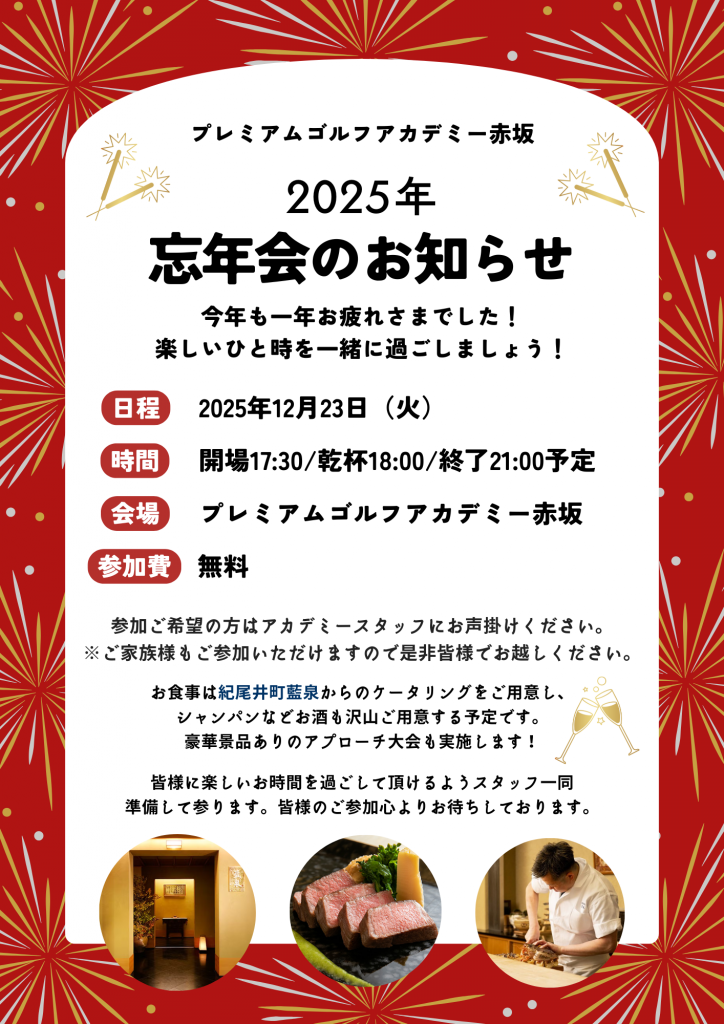 いつもプレミアムゴルフアカデミー赤坂をご利用いただき誠にありがとうございます。